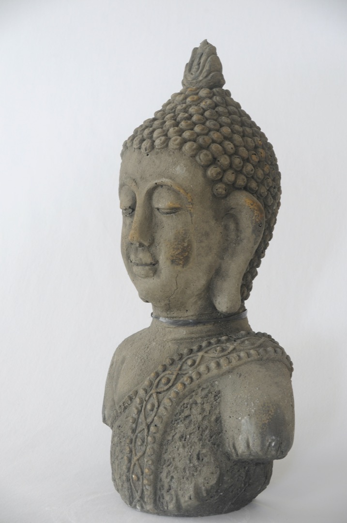 Deze Boeddha torso is hangemaakt van steen.